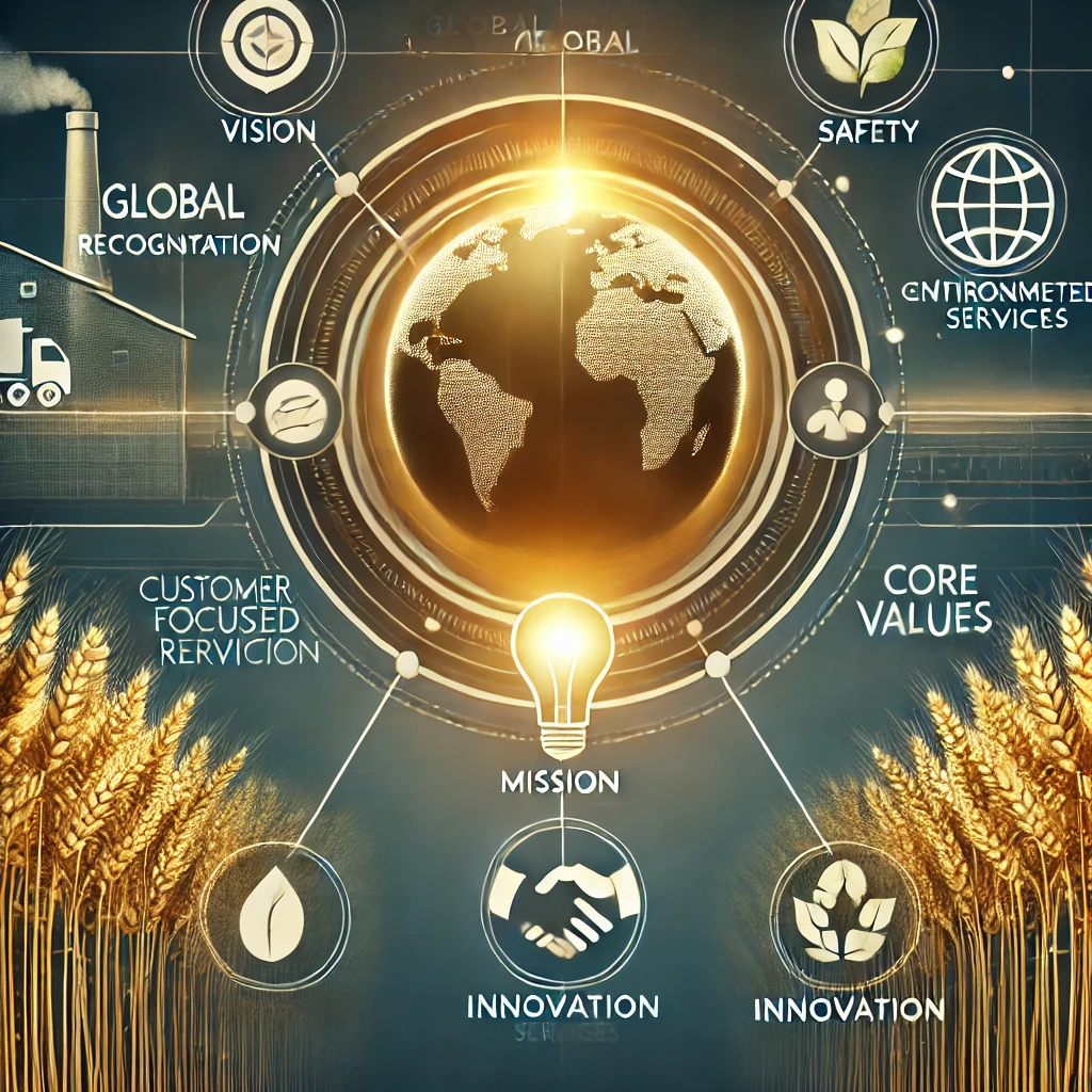 To stand out as a leader in wheat logistics and industrialization, earning recognition for excellence and reliability.